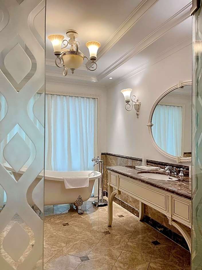 Enjoying city views, this elegantly furnished room features a tea/coffee maker, flat-screen TV and a mini-fridge. The bathroom offers separate bathtub and shower.