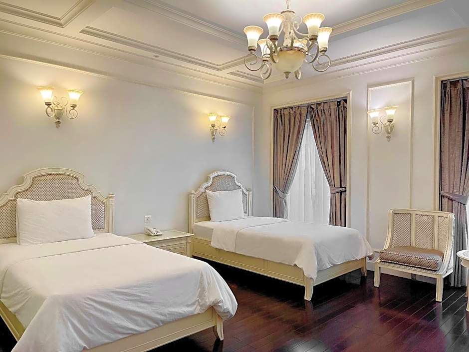 This twin room features views of Hue city. It has a separate bathtub and shower.